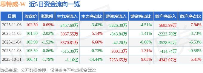 11月6日的资金流向数据方面,主力资金净流出2457.69万元,占总成交额3.43%,游资资金净流出3226.3万元,占总成交额4.51%,散户资金净流入5683.99万元,占总成交额7.94%。