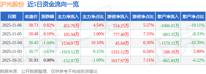 11月6日的资金流向数据方面,主力资金净流入451.76万元,占总成交额4.54%,游资资金净流入554.25万元,占总成交额5.57%,散户资金净流出1006.01万元,占总成交额10.11%。
