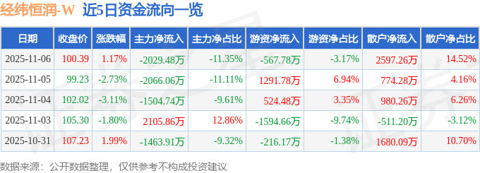 11月6日的资金流向数据方面,主力资金净流出2029.48万元,占总成交额11.35%,游资资金净流出567.78万元,占总成交额3.17%,散户资金净流入2597.26万元,占总成交额14.52%。