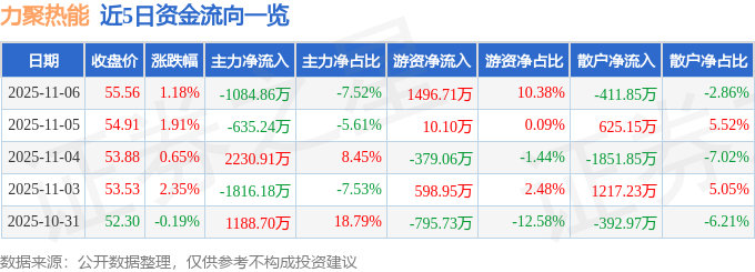 证券之星消息,截至2025年11月6日收盘,力聚热能(603391)报收于55.56元,上涨1.18%,换手率11.47%,成交量2.61万手,成交额1.44亿元。
