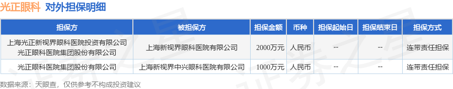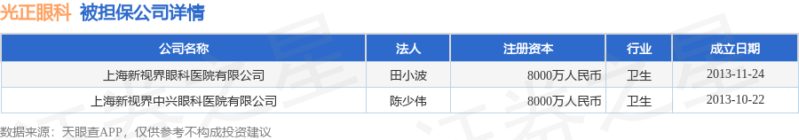 光正眼科11月5日披露2笔对外担保,被担保公司2家。对外担保明细如下表: