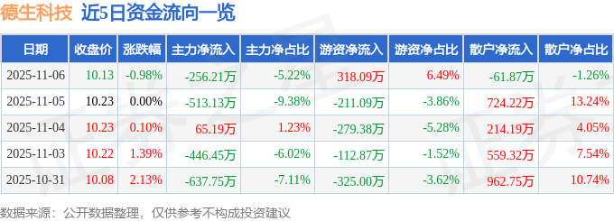 11月6日的资金流向数据方面,主力资金净流出256.21万元,占总成交额5.22%,游资资金净流入318.09万元,占总成交额6.49%,散户资金净流出61.87万元,占总成交额1.26%。