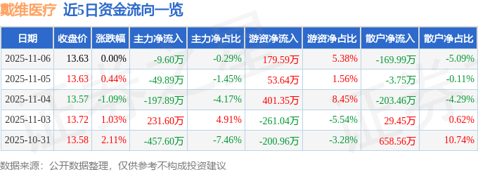 证券之星消息,截至2025年11月6日收盘,戴维医疗(300314)报收于13.63元,上涨0.0%,换手率1.71%,成交量2.45万手,成交额3338.46万元。