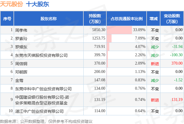 根据天元股份2025年三季报公布的十大股东详情如下:
