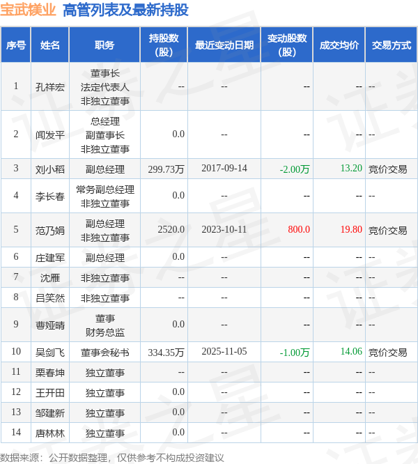 宝武镁业近半年内的董监高及核心技术人员增减持详情如下: