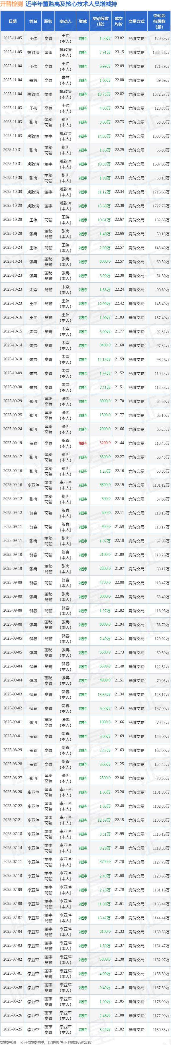 开普检测近半年内的董监高及核心技术人员增减持详情如下: