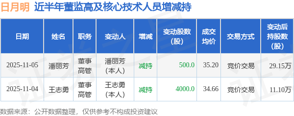 日月明近半年内的董监高及核心技术人员增减持详情如下: