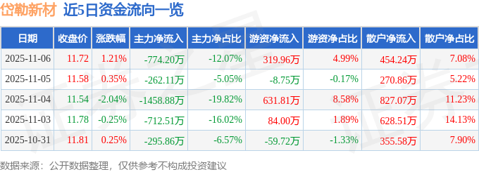 11月6日的资金流向数据方面,主力资金净流出774.2万元,占总成交额12.07%,游资资金净流入319.96万元,占总成交额4.99%,散户资金净流入454.24万元,占总成交额7.08%。