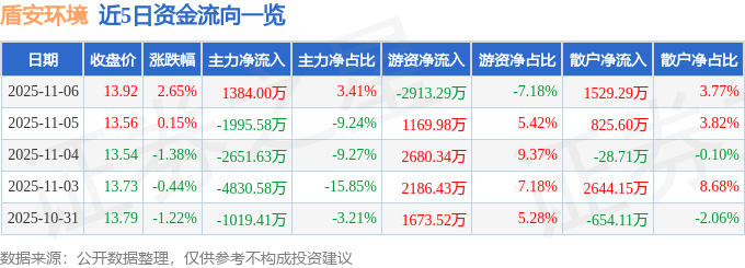 11月6日的资金流向数据方面,主力资金净流入1384.0万元,占总成交额3.41%,游资资金净流出2913.29万元,占总成交额7.18%,散户资金净流入1529.29万元,占总成交额3.77%。