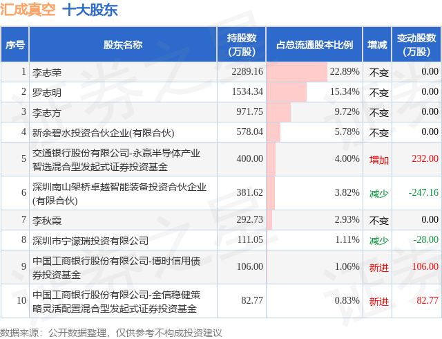 根据汇成真空2025年三季报公布的十大股东详情如下: