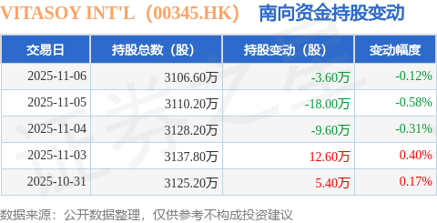 证券之星消息,11月6日南向资金减持3.6万股VITASOY INT'L(00345.HK)。近5个交易日中,获南向资金减持的有3天,累计净减持13.2万股。近20个交易日中,获南向资金增持的有16天,累计净增持99.2万股。截至目前,南向资金持有VITASOY INT'L(00345.HK)3106.6万股,占公司已发行普通股的2.95%。