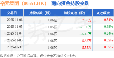 证券之星消息,11月6日南向资金增持57.35万股裕元集团(00551.HK)。近5个交易日中,获南向资金减持的有2天,累计净减持28.8万股。近20个交易日中,获南向资金减持的有9天,累计净减持183.68万股。截至目前,南向资金持有裕元集团(00551.HK)1.06亿股,占公司已发行普通股的6.6%。