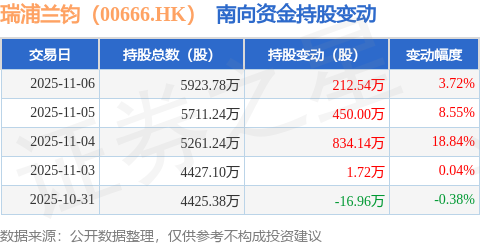 证券之星消息,11月6日南向资金增持212.54万股瑞浦兰钧(00666.HK)。近5个交易日中,获南向资金增持的有4天,累计净增持1481.44万股。近20个交易日中,获南向资金增持的有15天,累计净增持2295.06万股。截至目前,南向资金持有瑞浦兰钧(00666.HK)5923.78万股,占公司已发行普通股的6.76%。