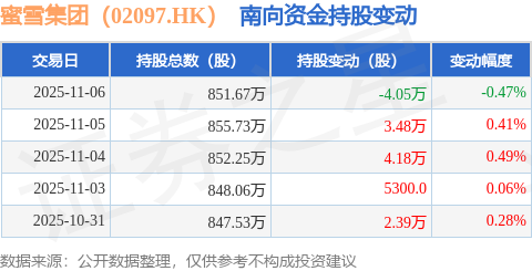 证券之星消息,11月6日南向资金减持4.05万股蜜雪集团(02097.HK)。近5个交易日中,获南向资金增持的有4天,累计净增持6.53万股。近20个交易日中,获南向资金增持的有14天,累计净增持170.46万股。截至目前,南向资金持有蜜雪集团(02097.HK)851.67万股,占公司已发行普通股的5.64%。