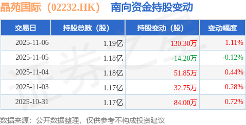 证券之星消息,11月6日南向资金增持130.3万股晶苑国际(02232.HK)。近5个交易日中,获南向资金增持的有4天,累计净增持284.7万股。近20个交易日中,获南向资金增持的有11天,累计净增持98.2万股。截至目前,南向资金持有晶苑国际(02232.HK)1.19亿股,占公司已发行普通股的4.16%。