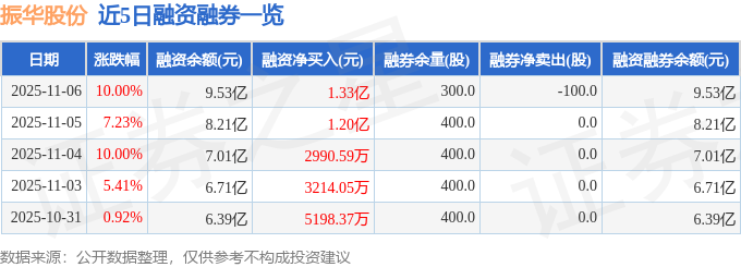 证券之星消息,截至2025年11月6日收盘,振华股份(603067)报收于33.1元,上涨10.0%,涨停,换手率9.86%,成交量70.08万手,成交额22.58亿元。