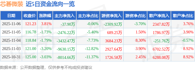 11月6日的资金流向数据方面,主力资金净流出37.9万元,占总成交额0.06%,游资资金净流出2309.92万元,占总成交额3.7%,散户资金净流入2347.82万元,占总成交额3.76%。