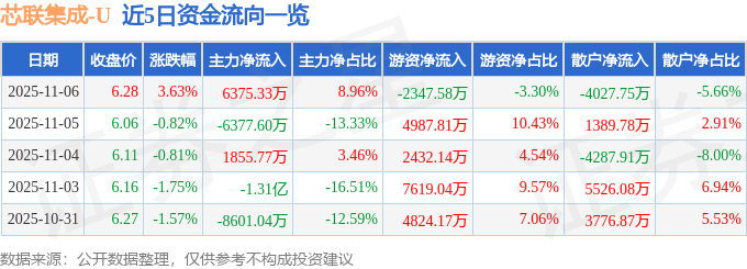 11月6日的资金流向数据方面,主力资金净流入6375.33万元,占总成交额8.96%,游资资金净流出2347.58万元,占总成交额3.3%,散户资金净流出4027.75万元,占总成交额5.66%。