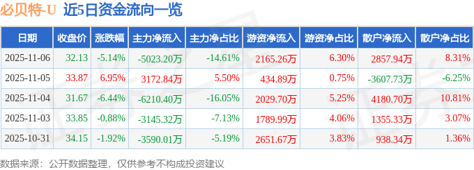 证券之星消息,截至2025年11月6日收盘,必贝特(688759)报收于32.13元,下跌5.14%,换手率22.78%,成交量10.58万手,成交额3.44亿元。