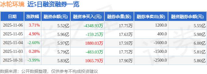 冰轮环境融资融券信息显示,融资方面,当日融资买入5955.37万元,融资偿还1.03亿元,融资净偿还4348.93万元。融券方面,融券卖出2200.0股,融券偿还1000.0股,融券余量17.75万股,融券余额267.99万元。融资融券余额5.55亿元。