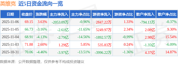证券之星消息,截至2025年11月6日收盘,英维克(002837)报收于69.15元,上涨3.63%,换手率3.66%,成交量31.09万手,成交额21.39亿元。