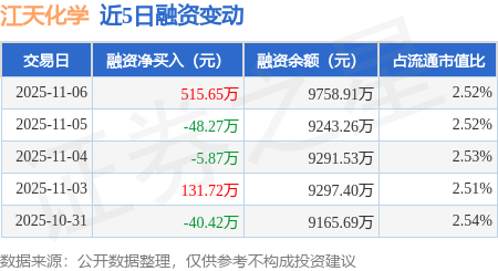 证券之星消息,11月6日,江天化学(300927)融资买入2520.62万元,融资偿还2004.97万元,融资净买入515.65万元,融资余额9758.91万元。