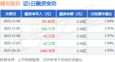 证券之星消息,11月6日,健友股份(603707)融资买入1380.45万元,融资偿还988.65万元,融资净买入391.8万元,融资余额3.14亿元,近20个交易日中有14个交易日出现融资净买入。