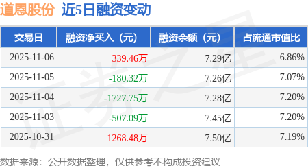 证券之星消息,11月6日,道恩股份(002838)融资买入1921.02万元,融资偿还1581.55万元,融资净买入339.46万元,融资余额7.29亿元,近20个交易日中有12个交易日出现融资净买入。
