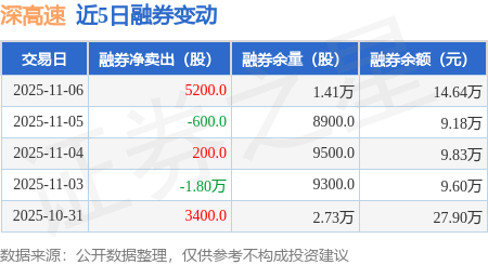 证券之星消息,11月6日,深高速(600548)融资买入1005.56万元,融资偿还772.06万元,融资净买入233.5万元,融资余额6772.95万元。