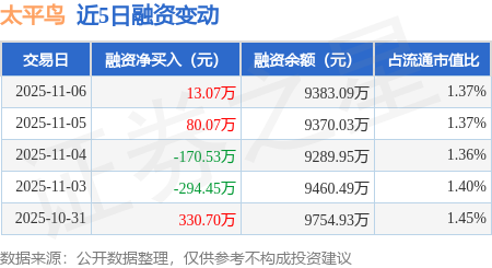 证券之星消息,11月6日,太平鸟(603877)融资买入234.03万元,融资偿还220.96万元,融资净买入13.07万元,融资余额9383.09万元,近20个交易日中有11个交易日出现融资净买入。