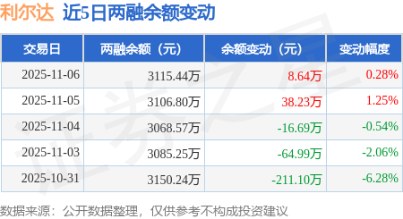 证券之星消息,11月6日,利尔达(920249)融资买入195.74万元,融资偿还187.1万元,融资净买入8.64万元,融资余额3115.44万元,近20个交易日中有11个交易日出现融资净买入。