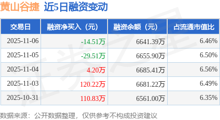 证券之星消息,11月6日,黄山谷捷(301581)融资买入309.16万元,融资偿还323.66万元,融资净卖出14.51万元,融资余额6641.39万元。