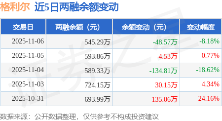 证券之星消息,11月6日,格利尔(920641)融资买入105.99万元,融资偿还154.56万元,融资净卖出48.57万元,融资余额545.29万元,近20个交易日中有11个交易日出现融资净买入。
