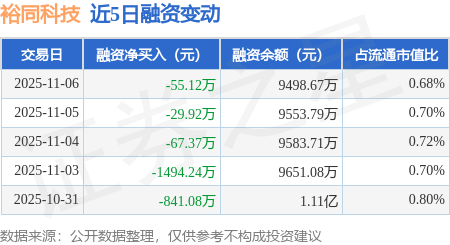 证券之星消息,11月6日,裕同科技(002831)融资买入2772.16万元,融资偿还2827.28万元,融资净卖出55.12万元,融资余额9498.67万元。