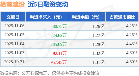证券之星消息,11月6日,栖霞建设(600533)融资买入458.79万元,融资偿还539.53万元,融资净卖出80.75万元,融资余额1.26亿元。