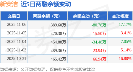 证券之星消息,11月6日,新安洁(920370)融资买入38.94万元,融资偿还119.72万元,融资净卖出80.78万元,融资余额389.6万元。