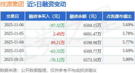 证券之星消息,11月6日,技源集团(603262)融资买入162.59万元,融资偿还259.9万元,融资净卖出97.32万元,融资余额6504.15万元。