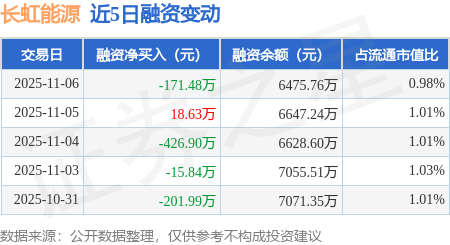 证券之星消息,11月6日,长虹能源(920239)融资买入414.25万元,融资偿还585.73万元,融资净卖出171.48万元,融资余额6475.76万元。