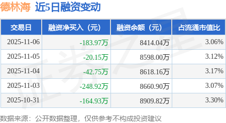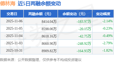 证券之星消息,11月6日,德林海(688069)融资买入213.06万元,融资偿还397.02万元,融资净卖出183.97万元,融资余额8414.04万元。