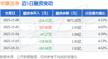 证券之星消息,11月6日,华康洁净(301235)融资买入654.31万元,融资偿还908.56万元,融资净卖出254.25万元,融资余额9875.2万元,近20个交易日中有13个交易日出现融资净买入。