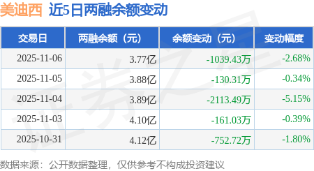 证券之星消息,11月6日,美迪西(688202)融资买入1565.5万元,融资偿还2601.4万元,融资净卖出1035.9万元,融资余额3.77亿元。