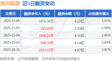 证券之星消息,11月6日,淮河能源(600575)融资买入4304.79万元,融资偿还5381.08万元,融资净卖出1076.3万元,融资余额4.22亿元,近20个交易日中有11个交易日出现融资净买入。