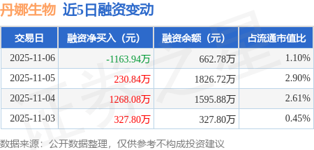 证券之星消息,11月6日,丹娜生物(920009)融资买入158.1万元,融资偿还1322.04万元,融资净卖出1163.94万元,融资余额662.78万元。