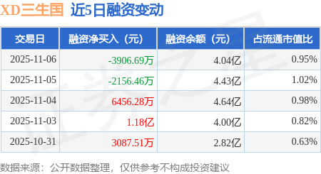 证券之星消息,11月6日,XD三生国(688336)融资买入8062.67万元,融资偿还1.2亿元,融资净卖出3906.69万元,融资余额4.04亿元,近20个交易日中有12个交易日出现融资净买入。
