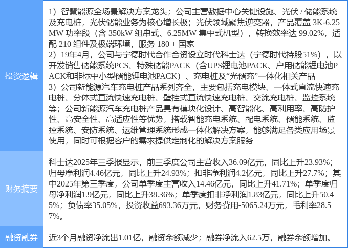 证券之星消息,科士达11月7日涨停收盘,收盘价53.6元。该股于11点25分涨停,1次打开涨停,截止收盘封单资金为9548.15万元,占其流通市值0.32%。