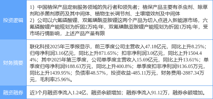 该股为锂电池,农药,大农业概念热股,当日锂电池概念上涨2.37%,农药概念上涨2.14%,大农业概念上涨0.98%。
