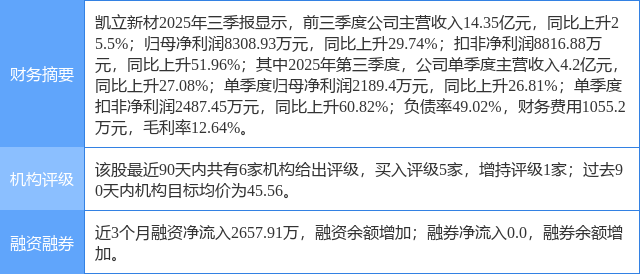 今日凯立新材(688269)涨8.35%,收盘报45.94元。