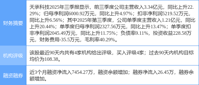 2025年9月15日,华鑫证券研究员任春阳发布了对天承科技的研报《公司事件点评报告:认购产业基金加强半导体布局,AIPCB实现头部客户突破》,该研报对天承科技给出“买入”评级。研报中预测公司2025-2027年净利润分别为1.01、1.58、2.12亿元,EPS分别为0.81、1.27、1.70元,当前股价对应PE分别为108、69、51倍,维持“买入”投资评级。证券之星数据中心根据近三年发布的研报数据计算,该研报作者对此股的盈利预测准确度为99.57%。