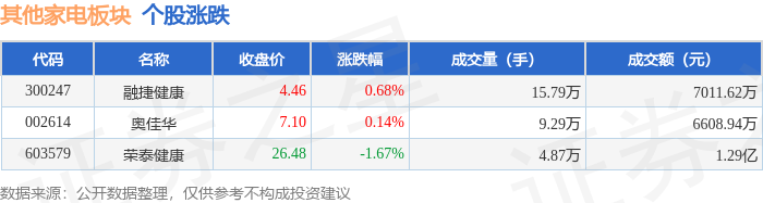 从资金流向上来看,当日其他家电板块主力资金净流出867.43万元,游资资金净流出1798.62万元,散户资金净流入2666.05万元。其他家电板块个股资金流向见下表: