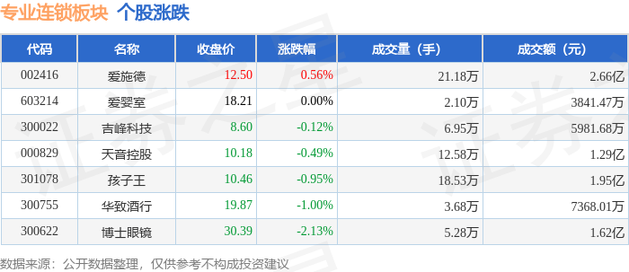 从资金流向上来看,当日专业连锁板块主力资金净流出3112.69万元,游资资金净流入1012.27万元,散户资金净流入2100.42万元。专业连锁板块个股资金流向见下表: